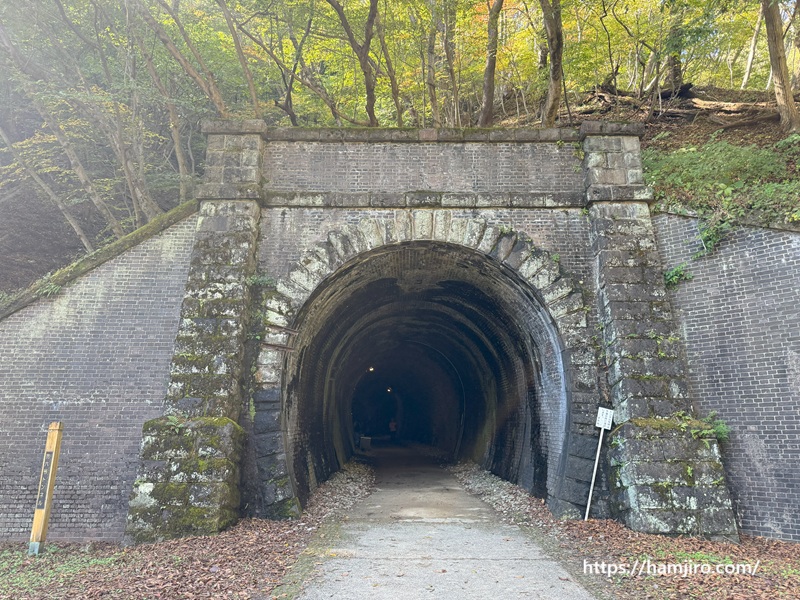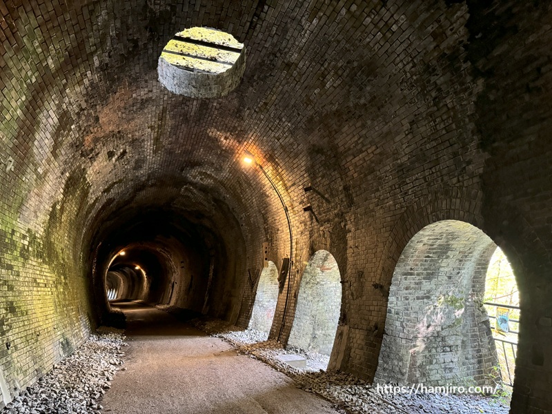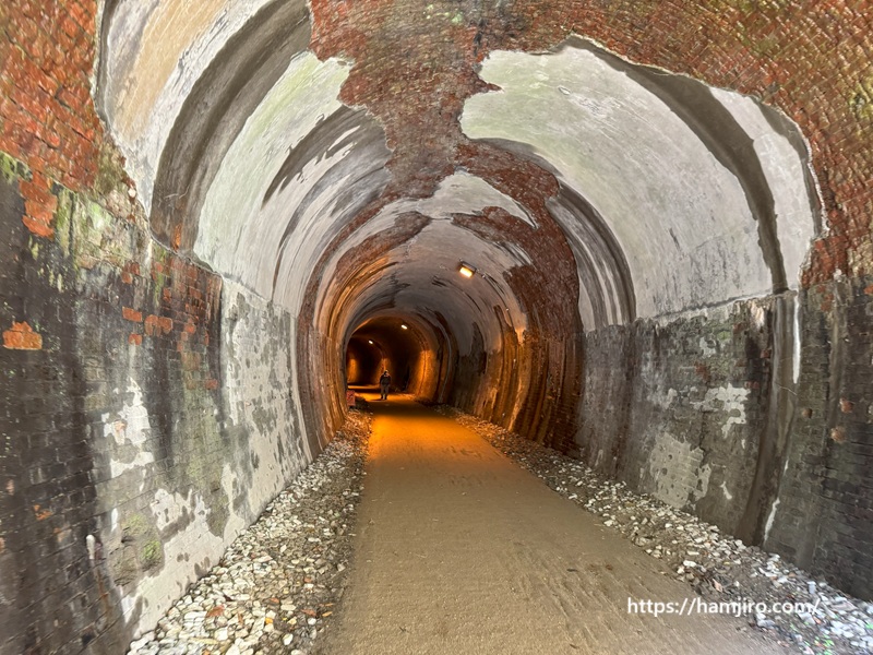 夏場でもトンネル内はひんやり!列車が走っていただけあって、トンネル内は道幅は問題なくすれ違い可能。