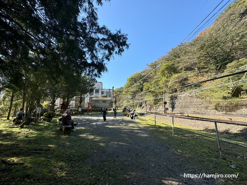 周辺での休憩は可能で、熊ノ平神社前にある木製の長ベンチが3~4基があるが常に人が座っている状態。