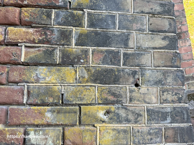 日本煉瓦製造株式会社製造の刻印。目線の高さぐらいに結構あるので見つけやすいかも。