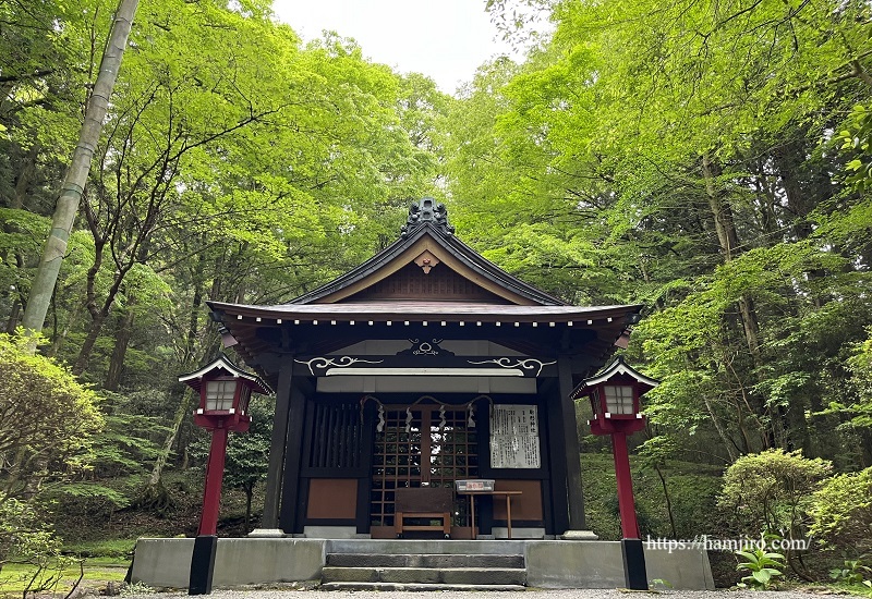 駐車場から少し歩くと現れる小さな神社。