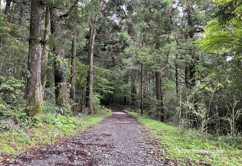 白浜付近の散策路。この辺りになるとあまり整備されていない砂利道になり緑が一層濃くなります。