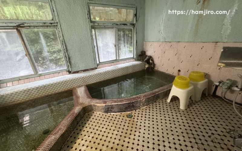 タイル張りの浴槽は昭和の時代によく見かけた光景。令和の時代この古さもあえていい味出してます
